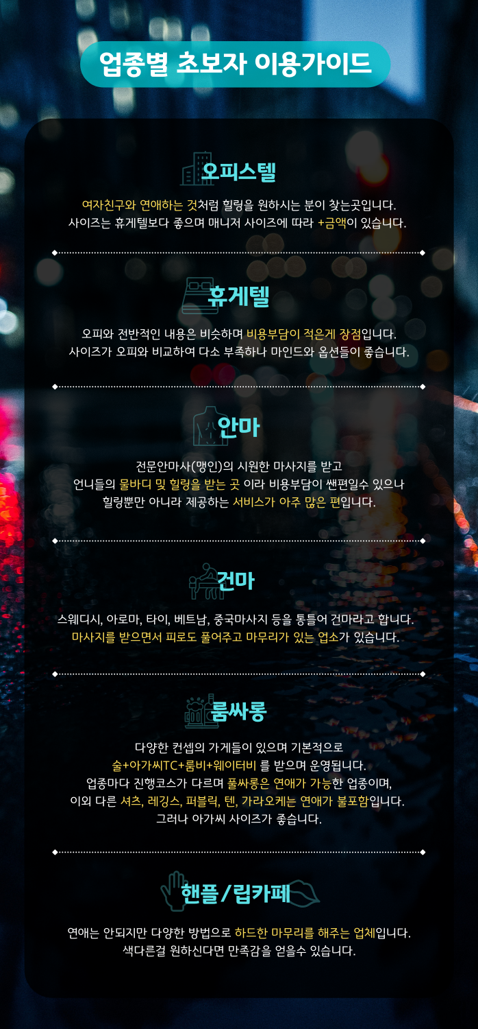 대한민국 최고의 밤문화 유흥업소 정보 커뮤니티가 될 수 있도록 앞으로 최선을 다하겠습니다.